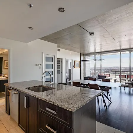 A microwave oven, an electric kettle, and a refrigerator can be found in a kitchen. The diner Bleu Marine is a short walk to this apartment. The nearest airport is Quebec/Jean Lesage International, 15 km from this accommodation, and Honore-Mercier / 1386 bus station is around 400 metres away. By joining fitness classes, guests can add more enjoyment to their stay.